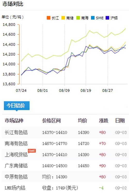 鋁錠價格今日鋁價2019-09-03