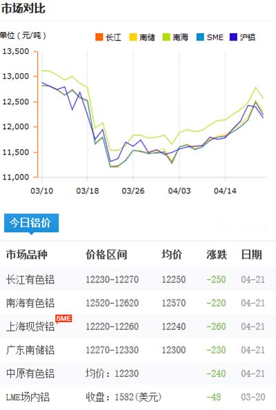 鋁錠價格今日鋁價2020-04-21